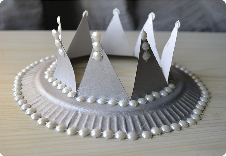 Прикрасьте готову корону декоративним намистом або намистинами-«половинками». Окрім цього, як оздобу для корони можете використати невеликі ґудзики, помпони з пряжі, вирізані з фетру квіти1 тощо.