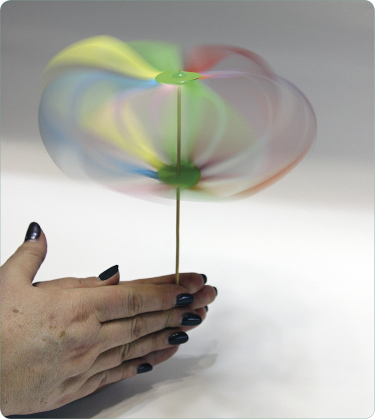 Вертушка-веселка готова! Крутіть шпажку між долонями й насолоджуйтеся переливами кольорів та зміною форм.